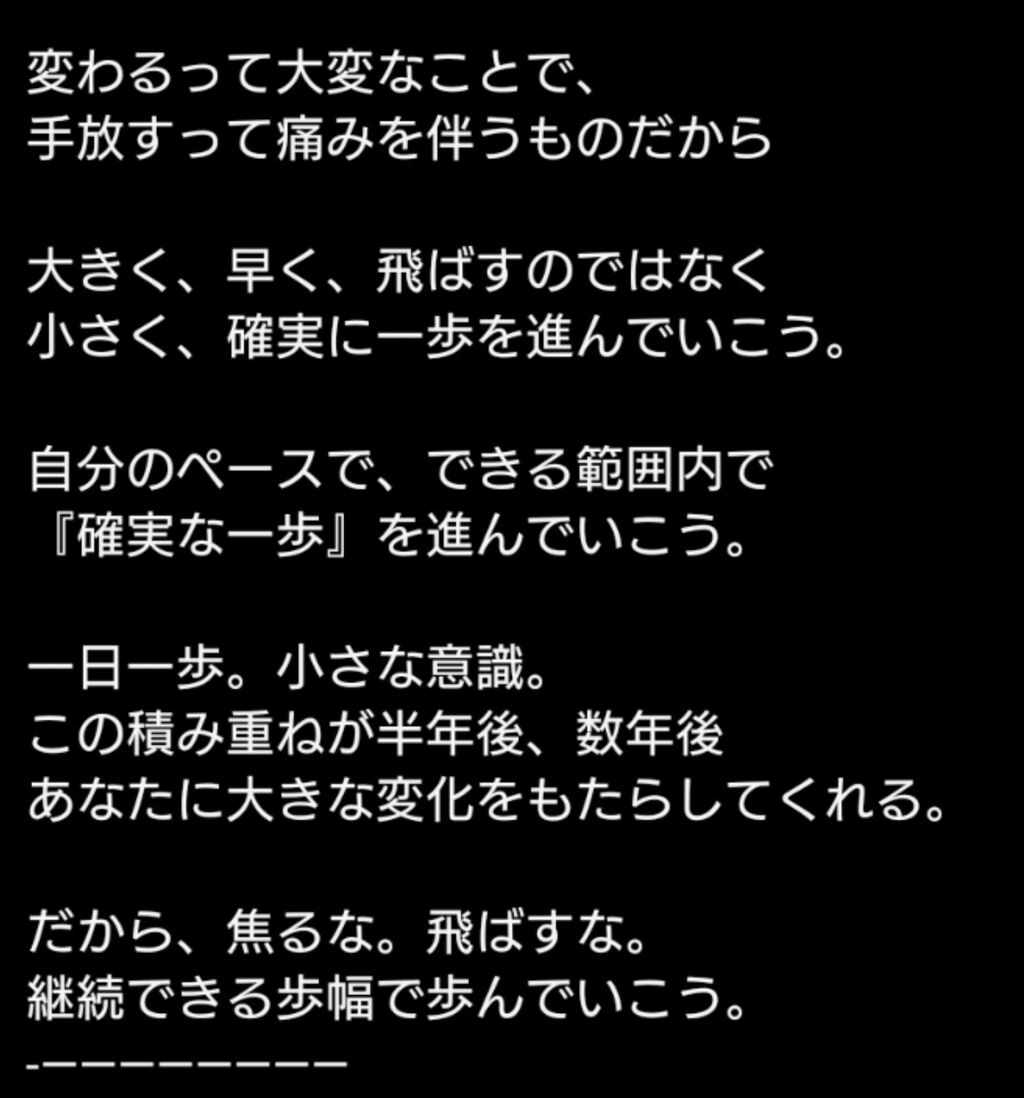 2025年02月11日 2.11 ~A sure step~ \確実な一歩🐾/ 『長い階段は、 一気に上がろうとすると、 途中でへばってしまう。 でも一段ずつ確実に上がっていけば、 時間はかかっても、 やがてはちゃんと頂上まで上がることができる。』 カテゴリなしの他の記事 前のページ次のページ